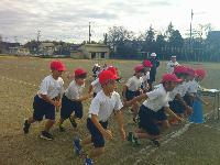 ほとんどの児童が参加し、逃亡者とハンターに分かれてグランドをかけまわります。