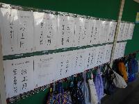 本日から、校内書き初め会で書いた作品を展示しております。みんな、冬休み中に家でもいっぱい練習してきたようで、12月の練習会よりもうまくなっている子が多かったです。ご協力ありがとうございました。