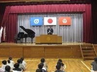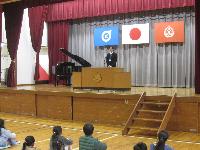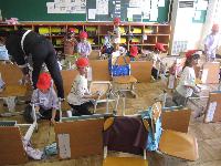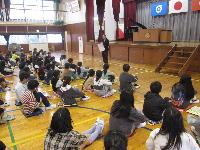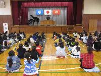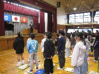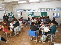 これまでは、体育館にて行っていましたが、寒さへの対策で教室にておこないました。これも少人数の本校だからできることです。