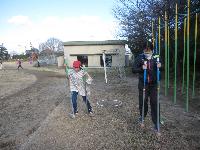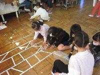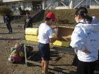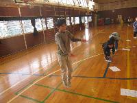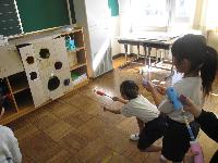 これも「投げる」動作の練習になり、上手な子は狙ったところに器用に投げ入れていました。