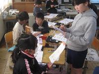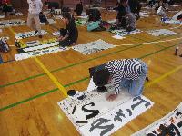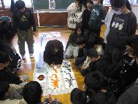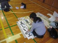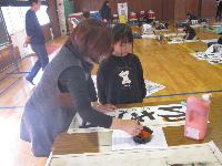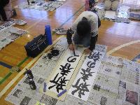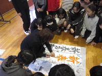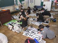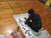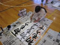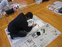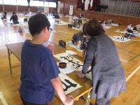 講師の先生をお招きし、書き初め練習会を行いました。1・2校時は、5・6年生が体育館にて練習しました。