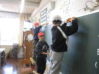 机・いすの掃除が終わると、それぞれのプランに沿って大掃除。多くのクラスでは扇風機や高いところの拭き掃除や窓ガラスの掃除をしていました。