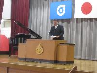 全校朝会では、校長より新しい目標について話がありました。学校目標を更新していくという内容と、一人ひとりが新たな目標をもって一生懸命がんばってほしい。と話されました。