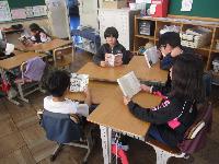 5年生は、算数の図形のまとめの問題を解いていました。図形は、ひらめきが大切です。考えが凝り固まっていると、新しい発想が出てきません。グループで相談し合いながら、柔軟に考える力を養って欲しいと思います。