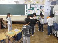 2年生が作った手作りおもちゃを1年生に遊んでもらいます。