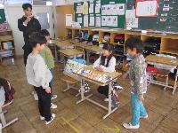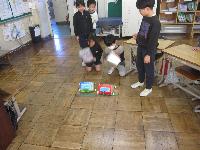1年生は、2年生が作ったおもちゃで楽しそうに遊んでいました。
