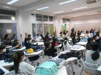 2年生は、道徳の授業をやっていました。自分の考えを、いろんな人と交流しながら伝え合っていました。どの子も、楽しそうに話し合っており、最後に全体で発表する場所では、みんな元気に手を上げていました。授業に主体的に参加する態度がきちんと身に付いていて、どの子も立派です。