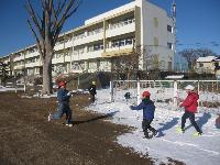 校庭には、まだ雪が残っているところがり、となれば・・・定番です。