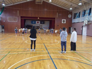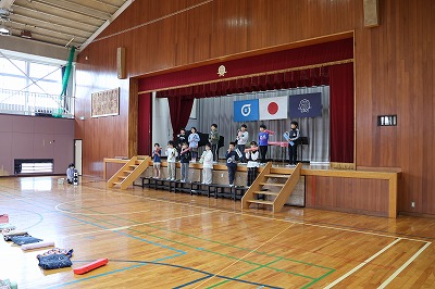 体育館での練習は、実際の発表を想定してステージを使って行います。曲によって並び方を変えたり曲紹介のセリフの練習をしたりと、本番さながらのリハーサルを行います。
