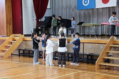 11月12日に予定している音楽集会に向けて、各学年が体育館での練習を始めています。写真は3年生の様子です。