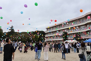 閉会式の直後、90周年記念のバルーンリリースが行われました。ここでも、たくさんの保護者ボランティアの方にお力をお借りしました。その後の引き渡し訓練までの間に、多くの方のご協力によりあっという間に後片付けが終了しました。地域に支えられた学校であることのありがたさを噛みしめて、感動の内に運動会は終了しました。