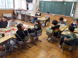4年生と6年生は落語です。絵本とともに、表現豊かな声で引きつけていく4年生は、「めぐろのサンマ」を読んでいました。今年は、サンマが大量だそうで、スーパーでもよく見かけますね。一方、6年生は暗闇の中のお話「晦日泥棒」です。目をつむりながら場面を想像して聞き入ります。
