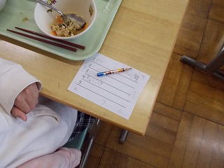 2年生の教室では、「好き嫌い無く食べよう。」「学校に来たら体操をしよう。」などの意見が出ていました。「早寝早起きをしよう」も出されましたが、学校で振り返りがしやすいように、家庭でのことは各自で取り組むことになりました。