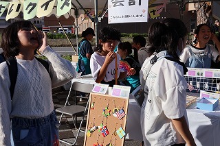 この日は、地域猫活動をしている6年生も広報活動を行いました。6年生も「わくわくにこにこショップ」の呼び込みや頒布を手伝いました。