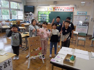 4年生の外国語活動では「友だちにおすすめの文房具セットをプレゼントしよう!」ということで、クラスのいろいろなところに開かれた文房具屋さんで、買い物をしていました。