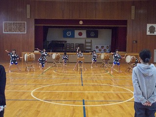 また、体育館には「白井太鼓」の皆さんが来てくださいました。今年度最後のご指導です。6年生は、発表本番と同じようにはっぴを着用して演奏しました。はっぴを粋に着こなすコツも教えていただき、気分も上がります。この後、演奏について褒めていただき、更に気分が上がりました。皆さんに見ていただく日が楽しみです。