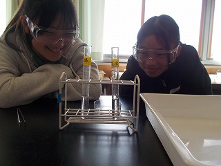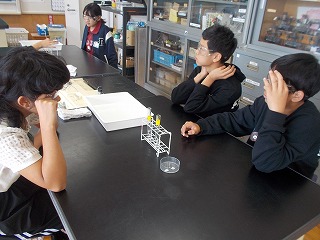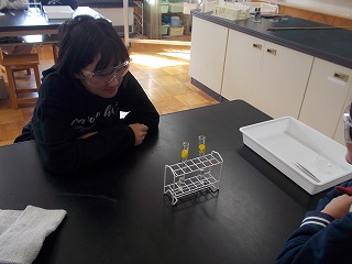 6年生が実験をしています。その様子を見ていると、「校長先生、塩酸にお気をつけください。」と優しい言葉を掛けてもらいました。