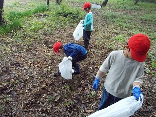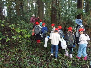 1年生が、生活科の学習でどんぐり拾いをするために、平塚地区にある森に行きました。
