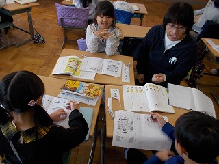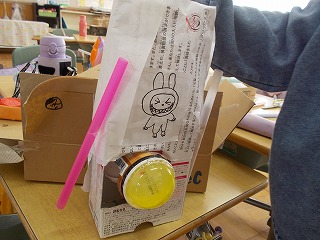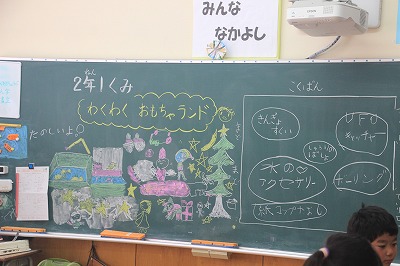 生活科の学習で「2年1組わくわくおもちゃランド」開催に向けて、準備を進めています。手作りおもちゃのお店を計画していて、1年生を招待するそうです。前回見に行ったときは、「校長先生、これあげます。」と、景品になるはずの工作のチョコバナナや折り紙の風船をプレゼントしてくれました。今日は、「校長先生もやってみませんか?」とくじ引きを勧められたり、「僕たちが考えたゲームを紹介します。まずは、・・・」と説明をしてくれたりしました。随分と準備が進んだようです。1年生の皆さん、楽しみに待っていてくださいね。