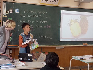 5年生の外国語です。「行ってみたい都道府県」について紹介しています。