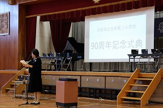 地域の皆様、保護者の皆様に支えていただき、本校は90周年を迎えました。音楽集会に先立ち、式典を開催しました。ご列席いただきました皆様、ありがとうございました。