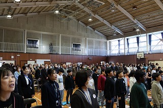 とてもいい声だったので、更にいい歌声になって欲しくて、校長からいくつかのお願いをしました。よりよい歌声を作り上げるために、練習から全力で取り組むこと。指揮者をしっかりと見て、心を一つにすること。そして、「未来」の歌詞があるので明るい未来が待っているように明るい表情で歌うこと。