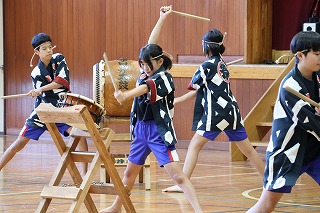 息がぴったり合っていて迫力のある演奏でした。「素晴らしい演奏でした。明日も頑張ってきてください。」代表児童からエールが送られました。