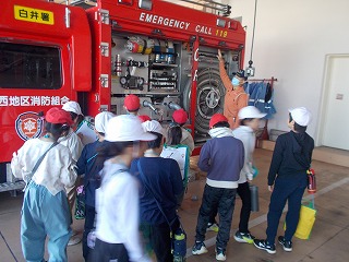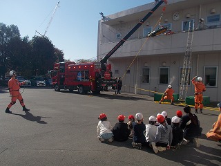 3年生が社会科で消防署見学に行きました。到着してすぐに、「消防隊員になりたい人?」と聞かれたら、もぞもぞする児童はいるものの、誰も手を上げませんでした。しかし、見学終了後同じ質問をされると、3名の児童が自信を持って手を上げていました。消防隊の方がやさしく接してくださり、命がけの訓練の様子を目の当たりにして憧れたのかもしれません。