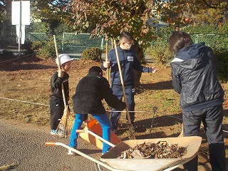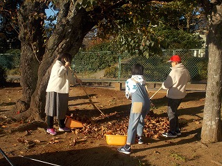 このところ毎朝、1便のスクールバスで登校した高学年児童と数名の教職員が落ち葉掃きをしています。どちらも、自主的に取り組んでいます。6年担任と6年生がやり始めたのを見て、人数が増えてきました。