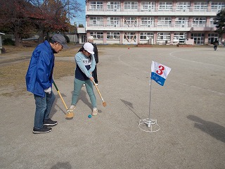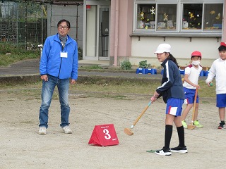 毎年恒例のグラウンドゴルフ。今年も地区社会福祉協議会の皆様にお世話になりました。4年生は初めての体験です。ルールや打ち方など一つ一つ丁寧に教えていただきながらコースを回りました。5,6年生は慣れたものです。ナイスショットの連続でした。保護者の方も、教職員も参加して楽しいひとときを一緒に過ごしました。