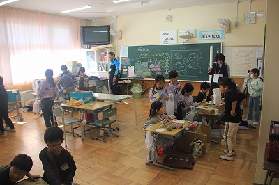 2年生が手作りしたおもちゃで1年生が楽しそうに遊んでいました。