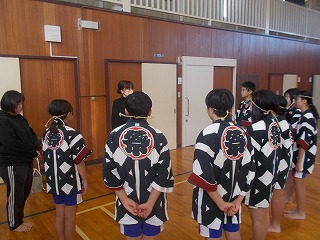 これまで、練習を支えてくださった白井太鼓の方も来てくださいました。「どんなに練習しても、大きなホールでは、私たちも緊張します。緊張しても、これまで練習したことに自信を持って、精一杯の演奏をしてください。明日も、会場で応援しています。」師匠からも熱いエールが送られました。