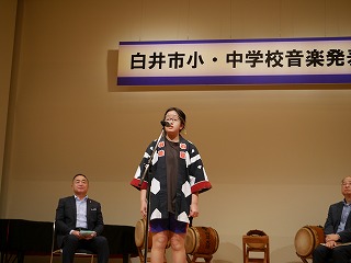 本校児童の「はじめの言葉」を皮切りに、白井市小・中学校音楽発表会が始まりました。