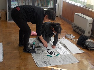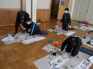 今年も書写専門の先生をお招きして、学年毎に書き初めのご指導をしていただきました。講師の先生が、なめらかな筆遣いで課題の文字を書きながら、気をつけることを解説していきます。人数が少ないので、全員特等席で見ることができました。