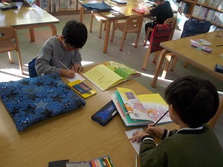 1年生も、随分音読が上手になりました。冬休みはたくさんの本を借りて持ち帰る予定です。お気に入りの絵本を、お子さんに音読してもらうのはいかがでしょうか。
