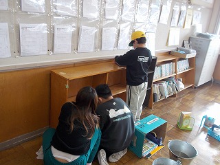 教室の大掃除をしている学級もあります。ピカピカに磨いて、新年を迎える準備です。
