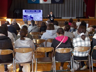 参観後は、教育講演会です。白井市学校支援アドバイザーの先生に「自立を育む」という演題でご講演いただきました。全家庭数の半数の保護者の方が出席しました。何度も頷きながら聞いていて、保護者の皆様の教育への関心の高さを実感しました。