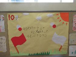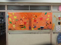今日から10月。あいにく天気は雨が降ったり、止んだりと、すっきりしない空模様となりましたが、校内には、季節の移ろいを感じさせる掲示物が貼ってあります。今年の秋は短くなりそうですが、その秋を笑顔で元気いっぱい過ごしたいという児童の気持ちを感じました。