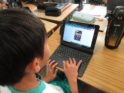 6年生が国語の授業で、「言葉は時代とともに」という学習をしていました。時代と共に変化した言葉にはどんなものがあるか考え、さらに、それをタブレットの「Canva」というツールを使ってまとめていました。