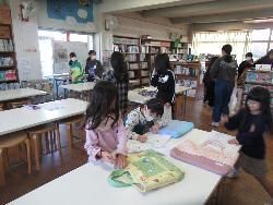 今日から11月28日まで、図書まつりを行っています。図書室の入口では図書委員が「図書BINGOカード」を配付し、それを受け取った児童はその質問に答えを書きます。ビンゴになると、図書委員お手製のしおりがもらえます。ビンゴカードを熱心に記入する子や、本を借りる子で図書室が賑わいます。今回は「本の福袋」もありました。タイトルが目隠しされ、「こわい本」「たべものの本」「いきものの本」などもジャンルに分かれて置かれていました。これは読書の幅を広げることにもつながります。「読書の秋」さまざまな本との出合いが、心を豊かにしていきます。