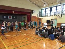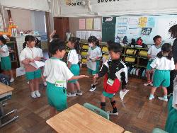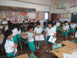 今日は1年生が、近所のこども園に行って、こども園の児童の発表を見学しました。年長さんのクラスが「ライオンキング」の劇を発表してくれました。まだ練習の途中です、とのことでしたが、大変立派な発表に1年生も驚いていました。その後、こども園の園児から、1年生への質問がありました。「小学校にはどんなテストがありますか」「何の時間が1番楽しいですか」「おいしい給食は何ですか」どの質問にも、多くの児童が手を挙げて、競って答えようとしている姿が微笑ましく感じました。