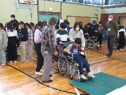 今日は、4年生が福祉協議会の方をお招きして、高齢者疑似体験を行いました。高齢者になると、体の機能にどのような変化がおこるのか、見え方、聞こえ方、体の可動域などについて、装具を着けながら体験を行いました。足におもりを巻き、「うわぁ重い」と思わず声を漏らす児童や、車椅子体験では、車椅子体験の操作に戸惑ったり、車椅子に乗って、「ちょっと怖い」とつぶやく児童の姿も見られました。相手の立場に立って物を考える、簡単なようで難しいものです。こうした体験を通し、高齢者や、立場の異なる人の気持ちに寄り添う心を育んでいきたいと考えています。
