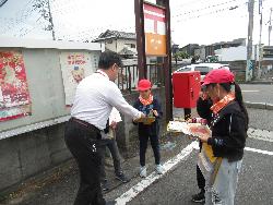 夏休みの課題の一つに、防火ポスターの作成がありました。それに取り組んだ1年生の作品が優秀賞に選ばれ、本日、消防署の方が来校されて表彰式を行いました。作品は今日から17日まで、千葉ニュータウンのイオンに展示されるそうです。