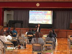 今日は、来年度入学予定の児童の就学時健康診断がありました。児童が健康診断を行っている間、保護者の方には生涯学習課の主催で、家庭教育講座が行われました。テーマは子どものやる気を引き出す「ペップトーク」です。プラスの声かけが子どもの力を伸ばす源となるというお話でした。本校の学校教育目標の合い言葉「やればできる」はまさにペップトークなのだとか。学校職員にとってもやる気のでるお話となりました。