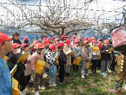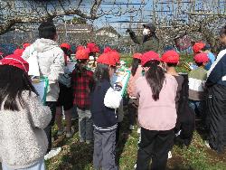 4月から年4回、梨農家の方に梨作りについて学びました。最終回の今日は、梨の剪定についてです。梨の枝をなぜ切るのか、切り口をそのままにしてはいけないので、そこに薬を塗って乾燥を防ぐことなどを学びました。1年間大変お世話になり、ありがとうございました。