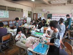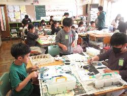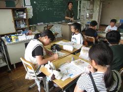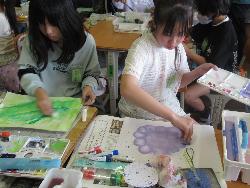 4年生が図工で、絵の具を絵筆の他に、スポンジやストロー、網などを使って、思い思いの絵を描いていました。いつもとは違ったものを使っての取組に興味をひかれたのか、いつも以上に熱心に取り組む様子がうかがえました。