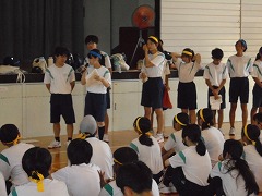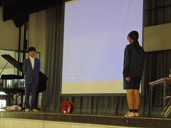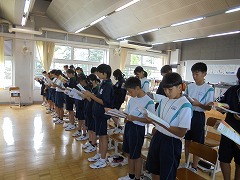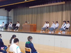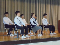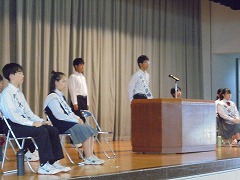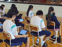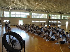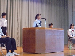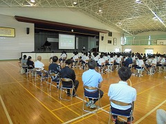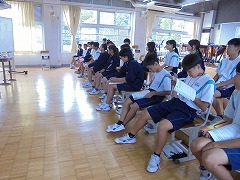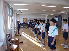 44日間の夏休みが明けました。朝から9月に入ったと思えないほどの暑さで、学校生活がスタートしましたが、昇降口では、元気な挨拶が響き渡りました。全校集会は、オンラインで行いました。総体や席書会入選の表彰から始まり、各学年代表の前期後半の抱負が立派に述べられました。校長先生からは、夏休みの話題や積極的(アグレッシブ)に学校生活を送ってほしいと話がありました。また、今後の部活動の地域展開についても触れられました。まだまだ、暑さが続くようですが、OFFモードからONモードに切り替え学校生活を進めて参りたいと思います。