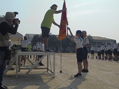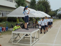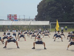 休み明けの体育祭予行練習となりました。時折厳しい日差しもあり、そして、湿度の高い天候の中でしたが、生徒は体育祭に向けた予行練習を一生懸命に取り組んでいました。本番同様の開閉会式や各競技における係の動きの確認等行うことができました。練習の中で、挨拶や返事をしっかり行っている姿は立派でした。18日の本番に向けて、あと一息です。