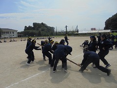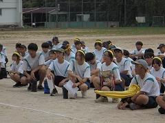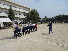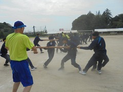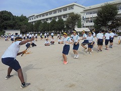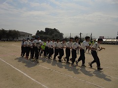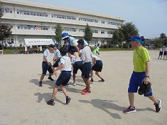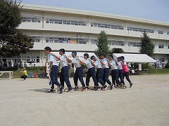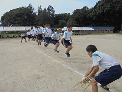体育祭の成功に向けて三日目の練習となりました。昨日の雨で気温が下がり、涼しい環境の中で練習ができました。準備運動では、「白井なし坊体操」を行います。また、青・黄色毎の応援練習も高まってきました。今日のメインは、棒引きです。入場の仕方やルールの説明後、実際に1試合だけ行いました。勝負事となるとみんな真剣でした。最後は、グランド整備をみんなで行いました。いよいよ3連休後の火曜日は、予行練習となります。