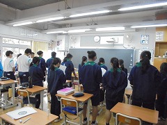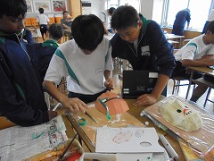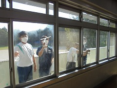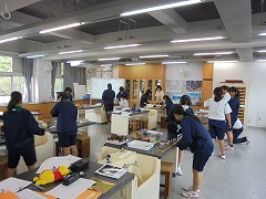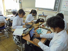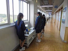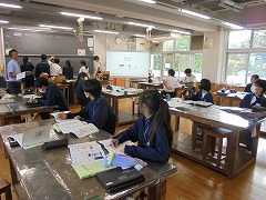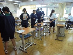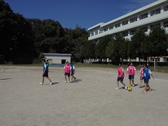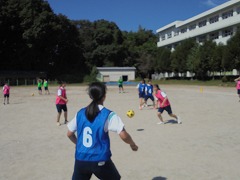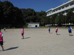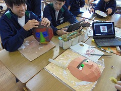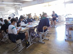 高く青くすんだ秋空は気持ちが良いです。そのような中、3年生女子では、保健体育科の授業で球技ゴール型(サッカー)を行っていました。少々暑さが戻った感じでしたが、青空の下、元気に活動していました。部活動も引退し運動不足となりがちですので、積極的に活動してほしいと思います。また、美術科では、2年生が「お面作り」製作中でした。午後は、間もなく前期が終了する関係で、大掃除が行われました。通常の時間よりも多めに清掃時間を取り、普段できない場所に手を入れて一生懸命に取り組む姿がありました。